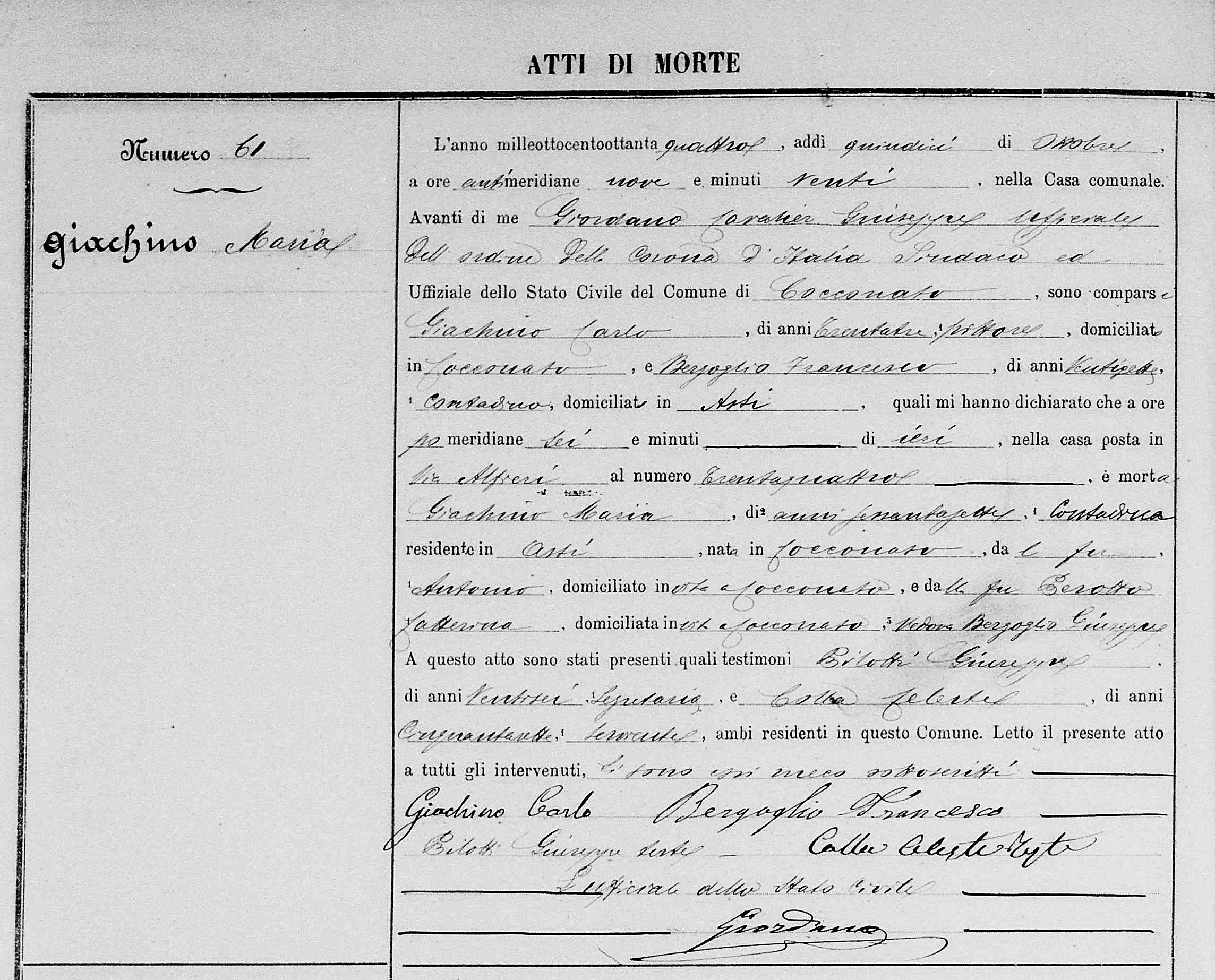 | Morte di una nonna paterna | Maria Giachino 15 ottobre 1884 (Età 2 mesi)  |