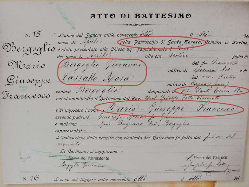 | Nascita di un figlio n° 1 | Mario Giuseppe Francesco Bergoglio 2 aprile 1908 (Età 24 anni) |