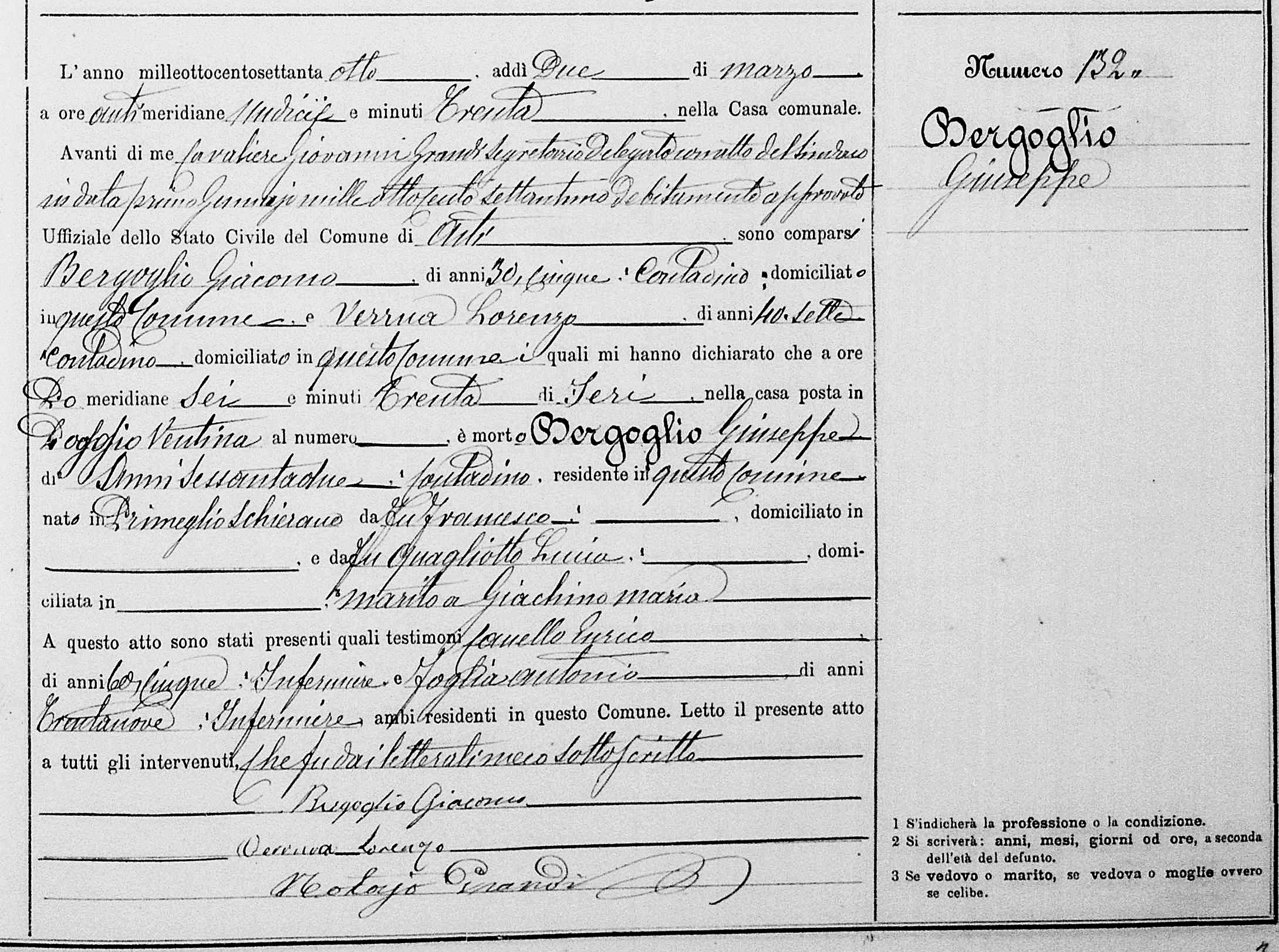 | Morte di un marito | Giuseppe Bergoglio 1 marzo 1878 (Età 61 anni)  |