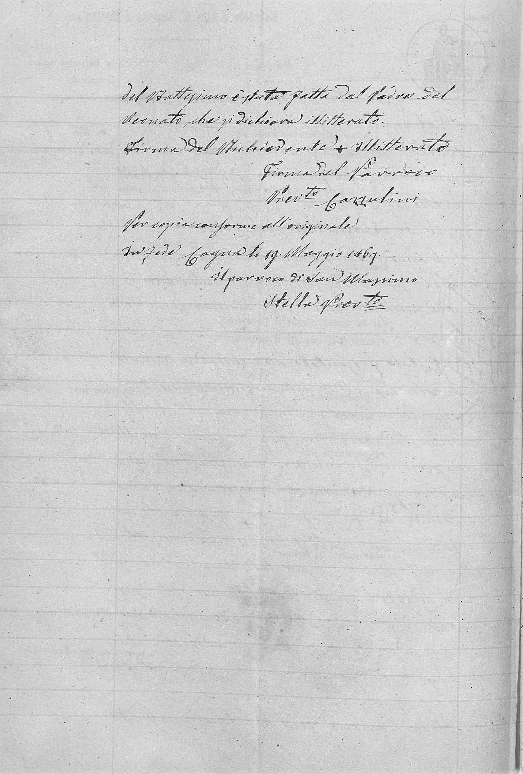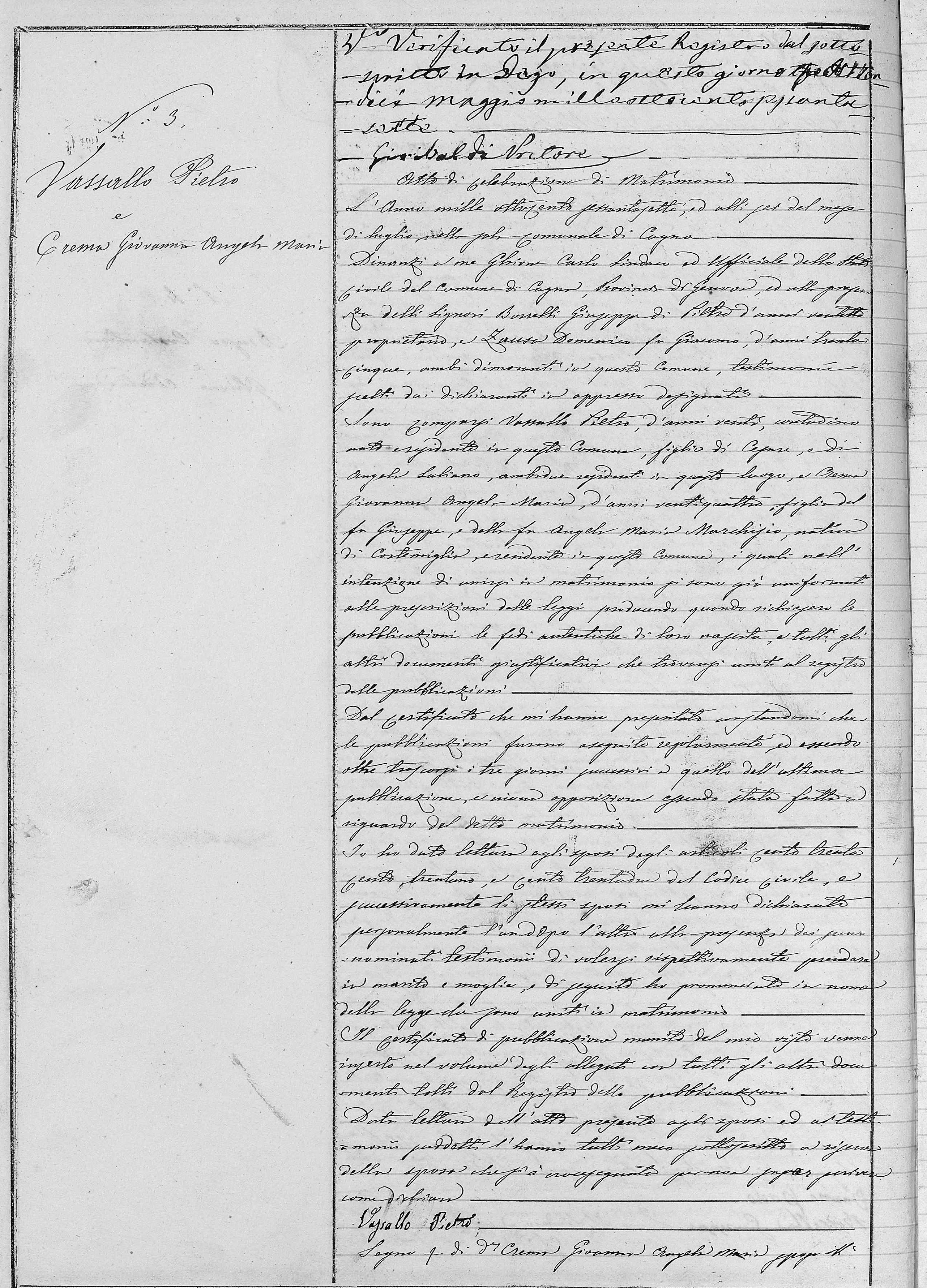 | Matrimonio di un figlio | Pietro Vassallo — Angela Crema — View this family 6 luglio 1867 (Età 51 anni)  |